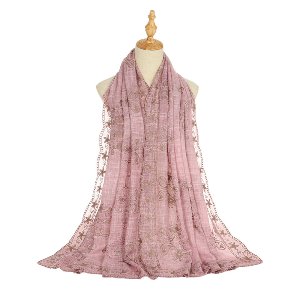 Flower Cotton Embroidered Hijab Scarf For Women Lace Headscarf Wraps Muslim Shawls Maxi Turbans For Women Islam Headband Stole