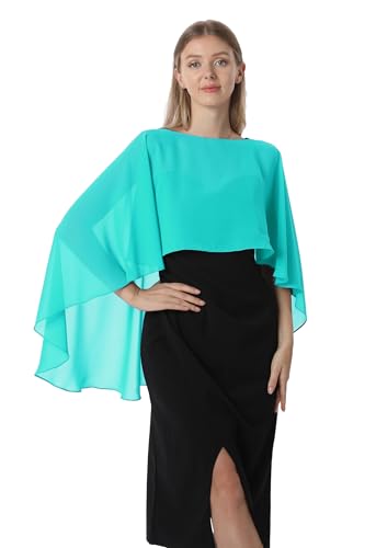 Hotshawl Capelets for women Chiffon Cape Shawls and Wraps for Evening Dress Wedding Capes Cover Up, Aqua, One Size