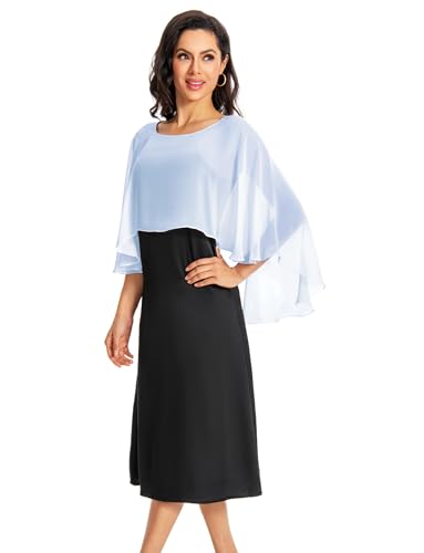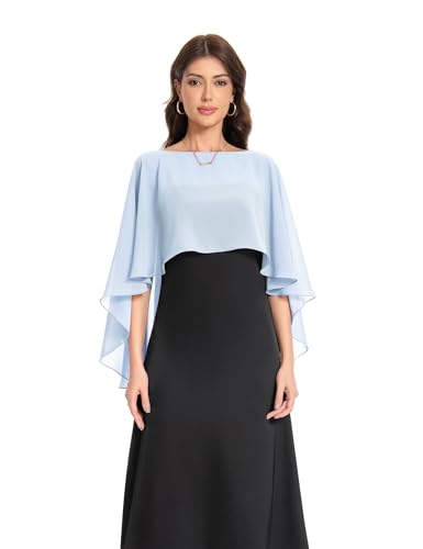 Baoqiya Chiffon Capelets for women Soft Shawls and Wraps for Evening Dresses Bridesmaid Wedding Sheer Cape Cover Up, Sky Blue, One Size