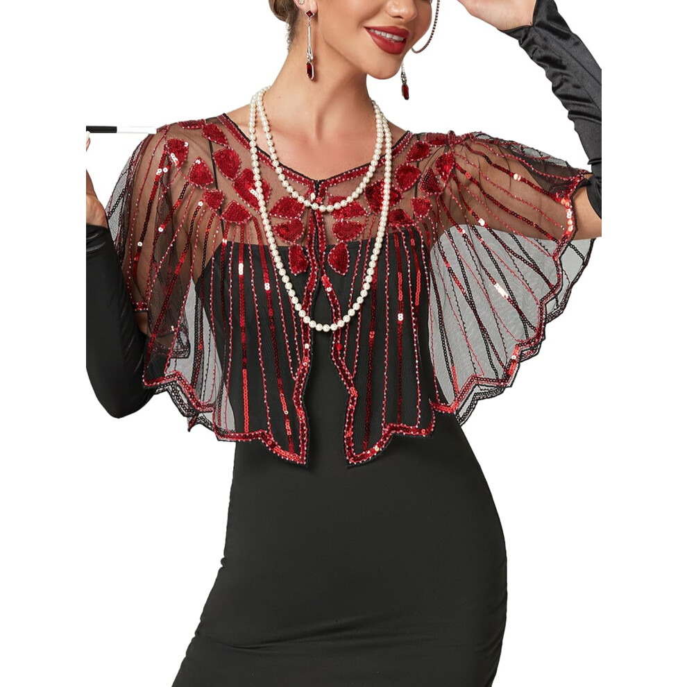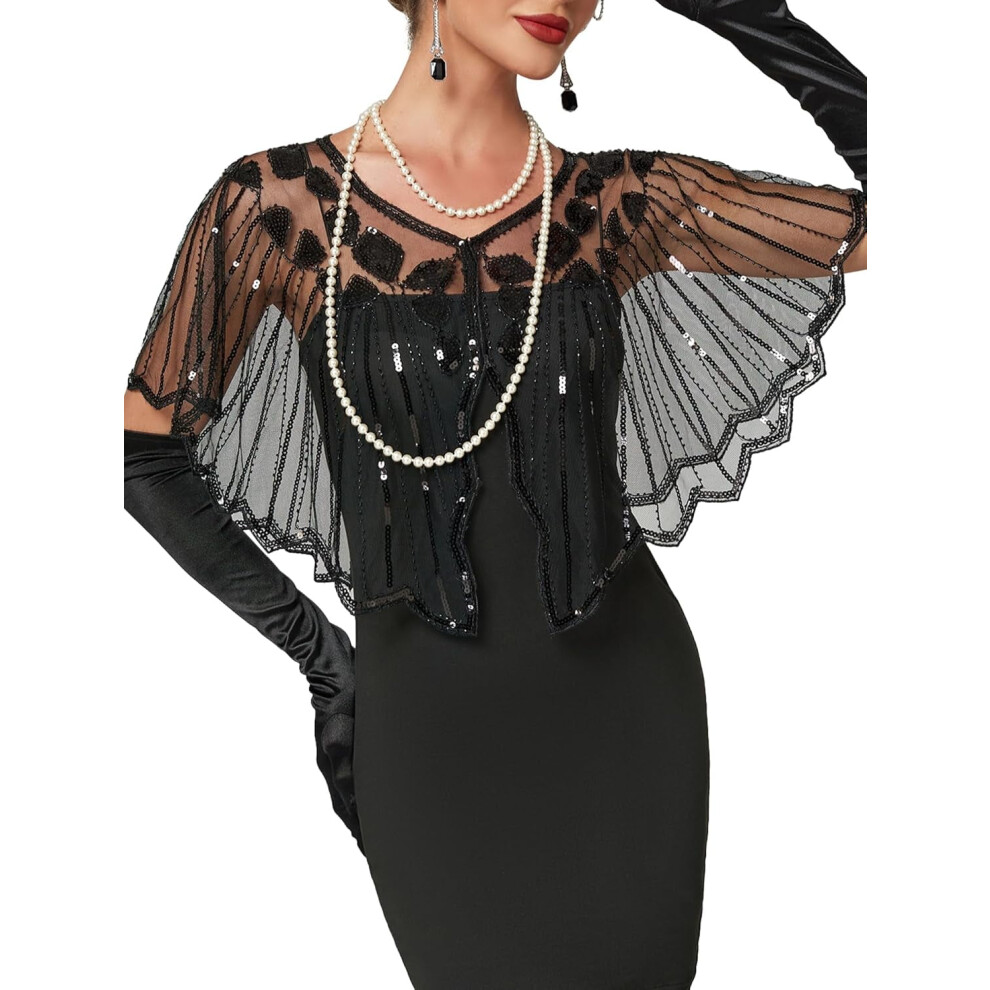 Women's 1920s Shawl Wraps,Sequin Flapper Evening Shawls for women Gatsby Accessories for Harlem Night
