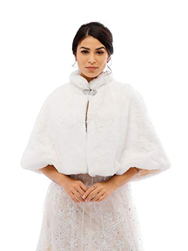 Jovono Bride Wedding Faux Fur Shawl Wrap Bridal Fur Scarf Fur Wraps and Shawls for Women (White)