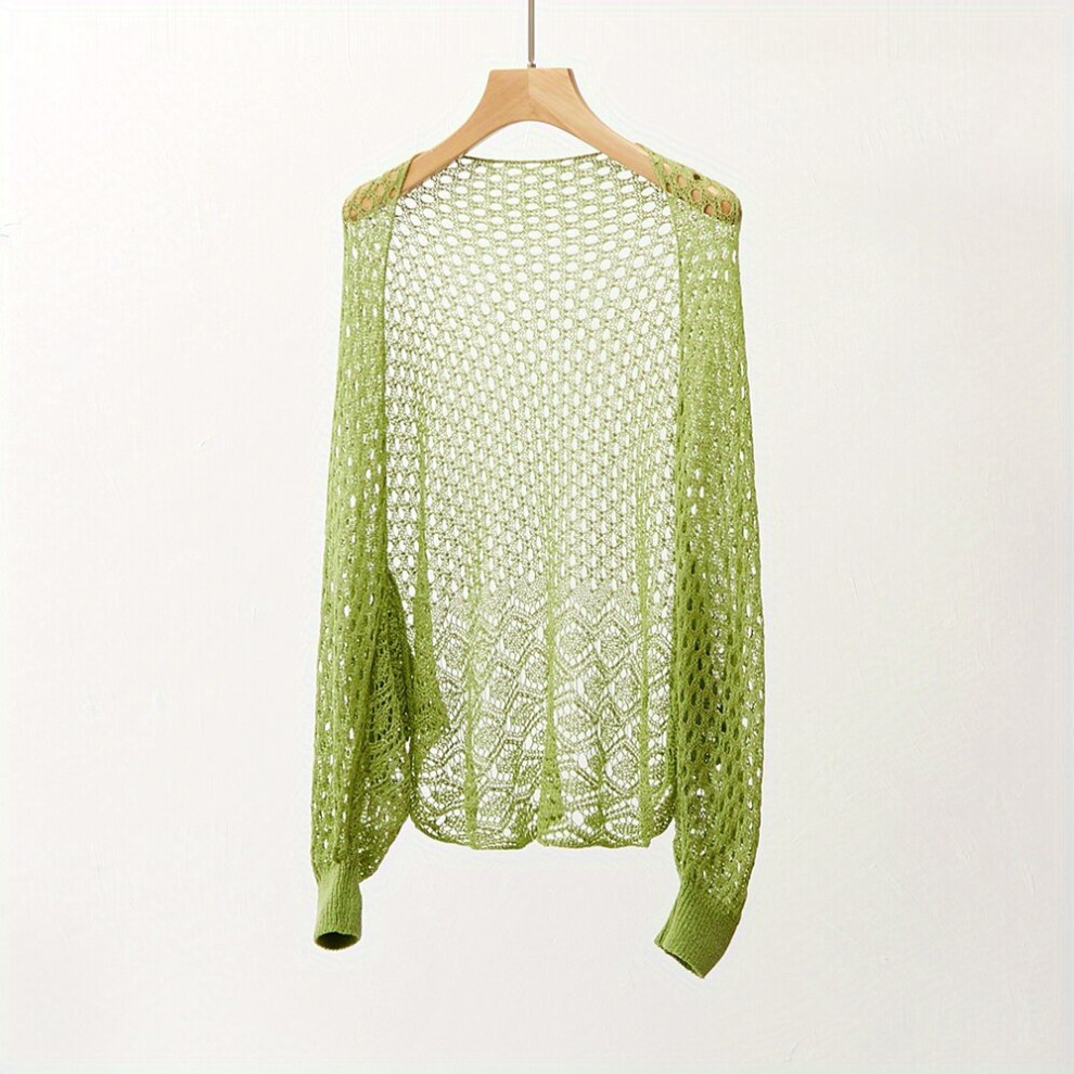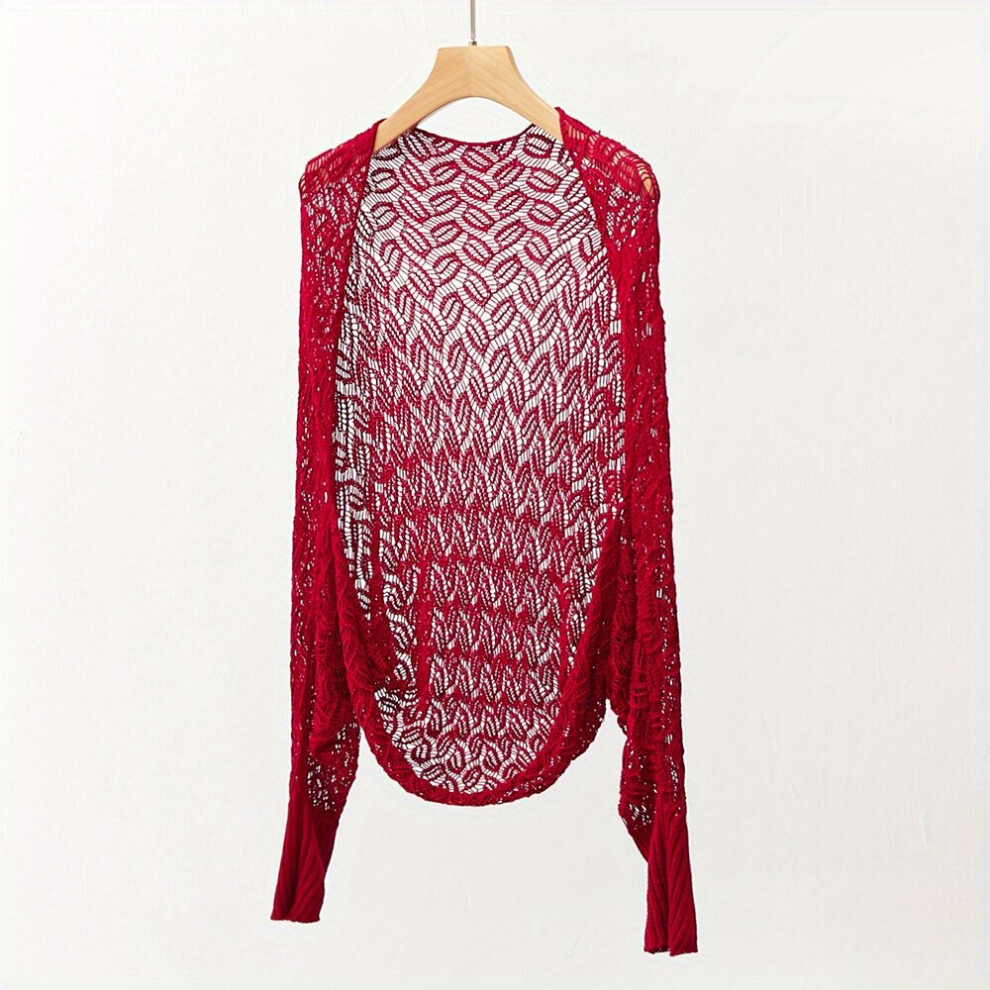 Loose Hollow Out Knitted Shawl Solid Long Sleeve Casual Cape Wraps Decorative Sunscreen Shawls For Women Outdoor