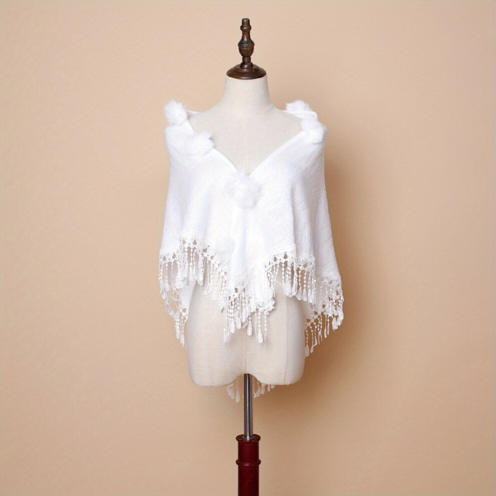 Pom Pom Shawl Lace Tassel Cape Warm Wraps Wedding Bridal Dress Wraps Shawls For Women Decoration
