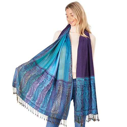 RIIQIICHY Blue Pashmina Shawls and Wraps for Women Wedding Ladies Winter Scarf