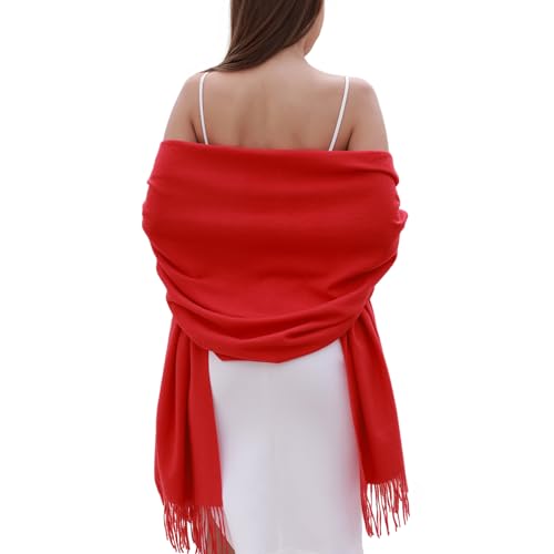 RIIQIICHY Red Pashmina Shawls and Wraps for Women Wedding Ladies Winter Scarf