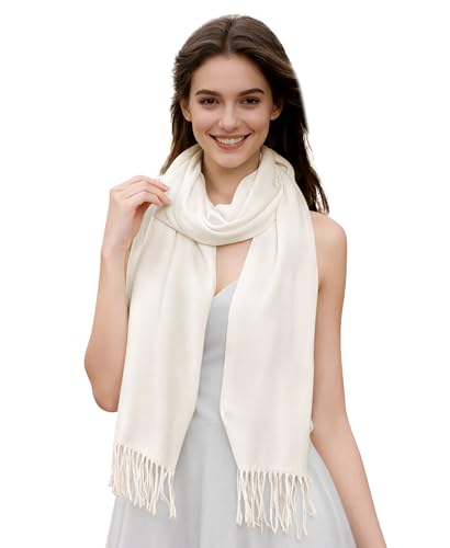 RIIQIICHY Cream Pashmina Shawls and Wraps for Women Wedding Ladies Winter Scarf