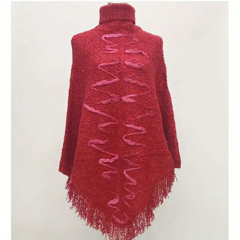 Extended Tassel Shawl Vintage Thickened Turtleneck Sweater Warm Cape Windproof Wraps Pullover Shawls For Women