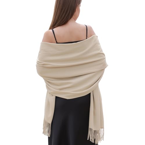 RIIQIICHY Beige Pashmina Shawls and Wraps for Women Wedding Ladies Winter Scarf