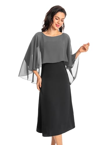 Baoqiya Chiffon Capelets for women Soft Shawls and Wraps for Evening Dresses Bridesmaid Wedding Sheer Cape Cover Up, Dark Grey, One Size