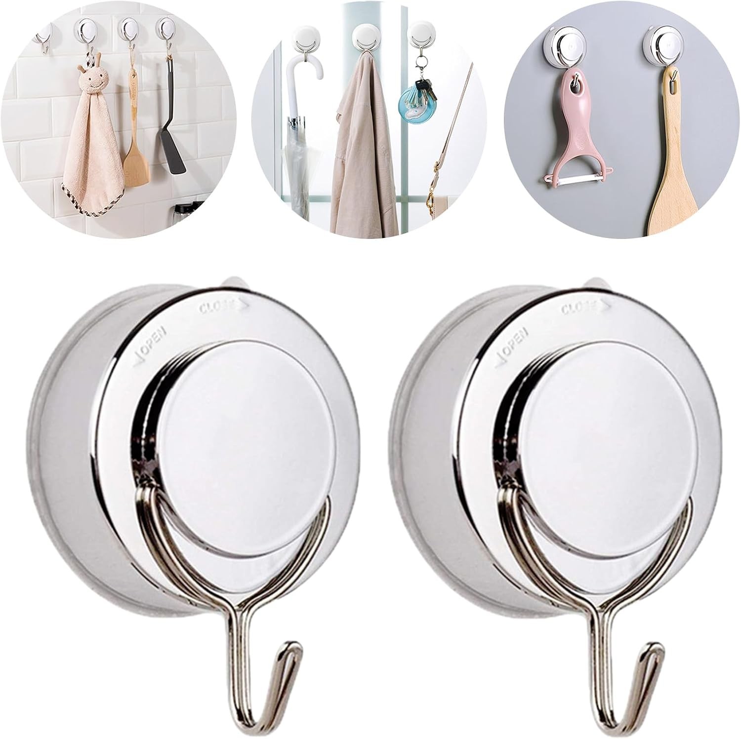 Gomeer 2PCS Silvery No Drill Suction Cup Hooks,Wreath Hook for Christmas Wreath Halloween Decorations Bathroom Towel Shower Door Window,Stainless Steel Vacuum Adhesive Heavy Duty Suction