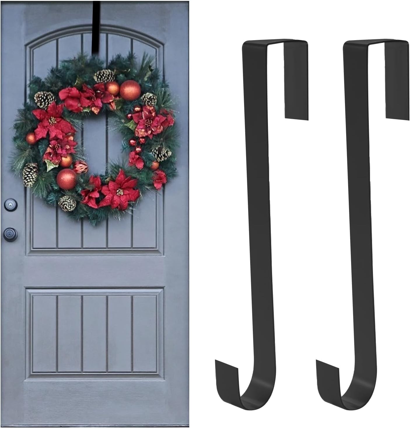 Jsdoin Christmas Wreath Door Hanger, 12.5 Inches Metal Front Door Wreath Hook f