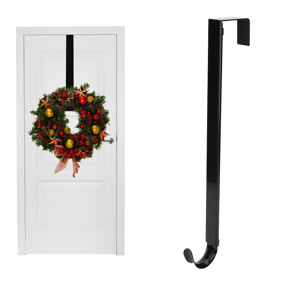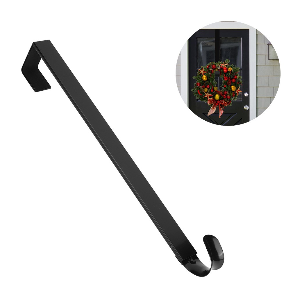 CHEERYMAGIC Christmas Metal Wreath Hanger, 31 x 2.5cm Wreath Door Hanger Over Door Wreath Hook Holder for Christmas Home Office Wall Wedding Wreath Display A7HHGG (Black)