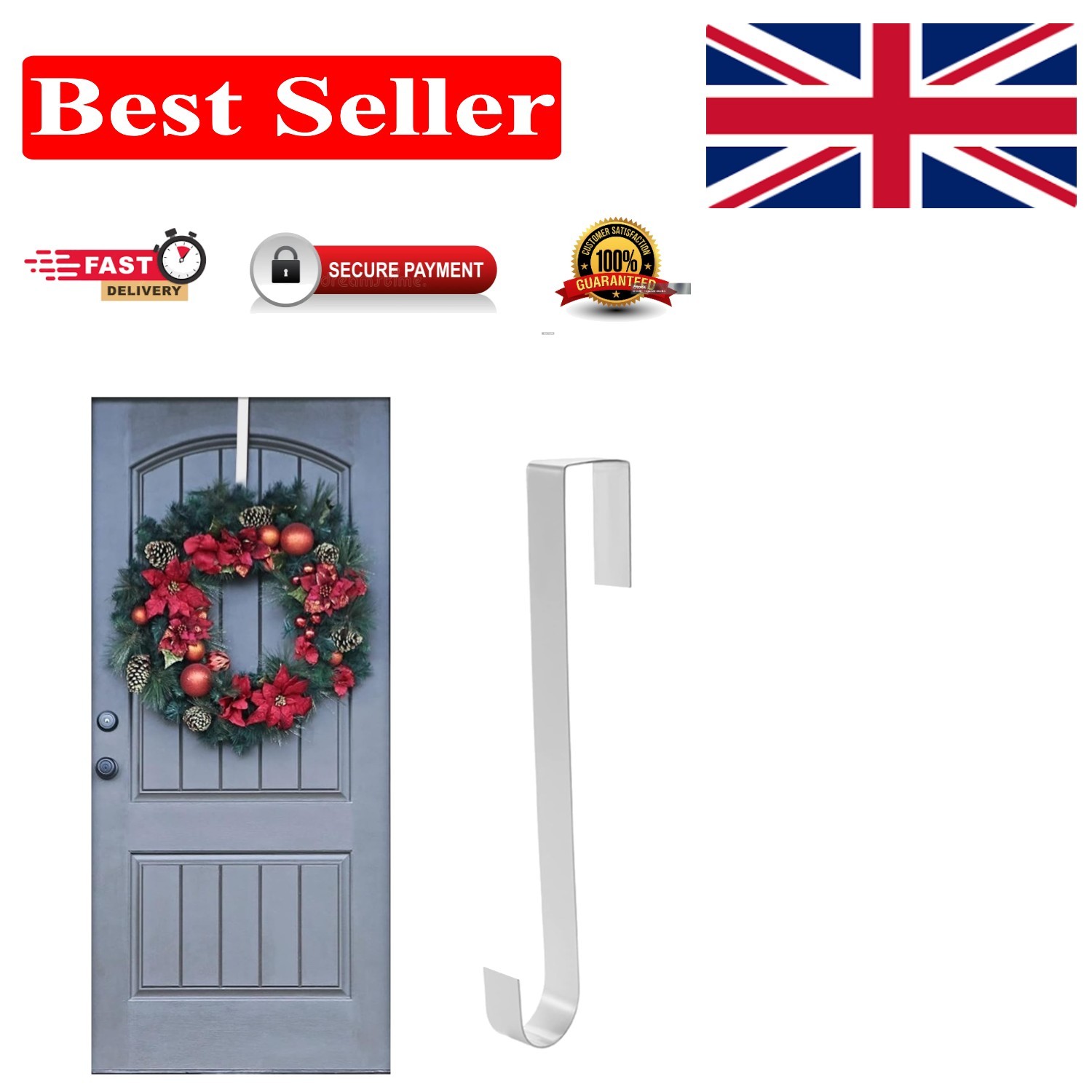 New OVER DOOR HANGER WREATH Hanger CHRISTMAS HOOK XMAS DECORATION UK SLR