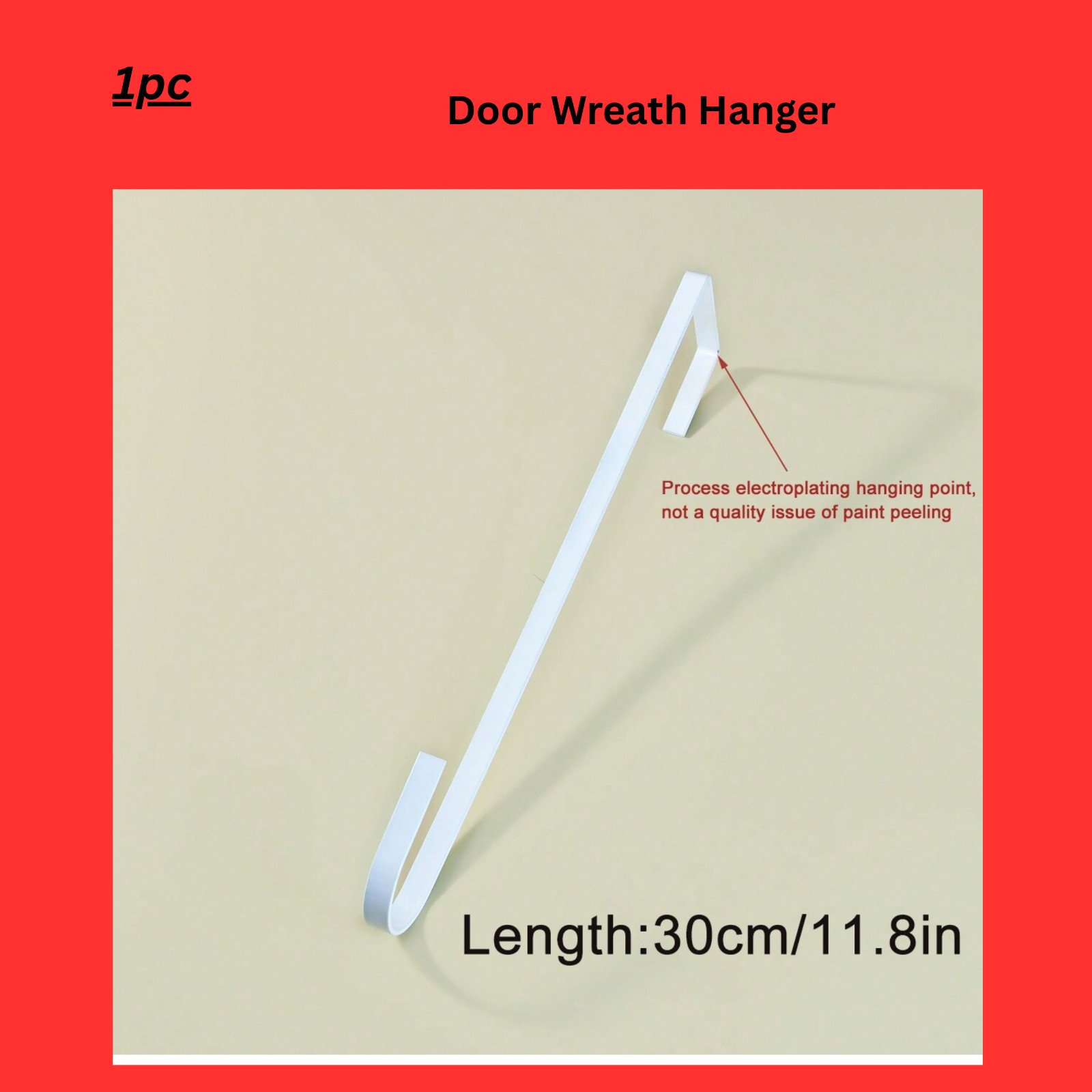 Versatile 12.5-Inch J Shape Wreath Hook for Door - Holiday & Everyday Use