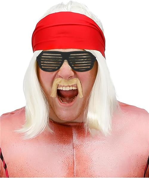 Smiffys 90s Wrestling Star Kit, Blonde Wig, Bandana, Self Adhesive Tash & Specs, 1990's Fancy Dress, 1990s Dress Up Wigs