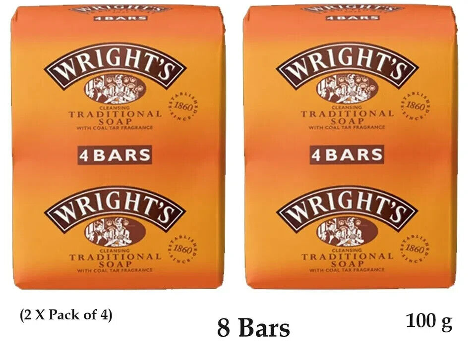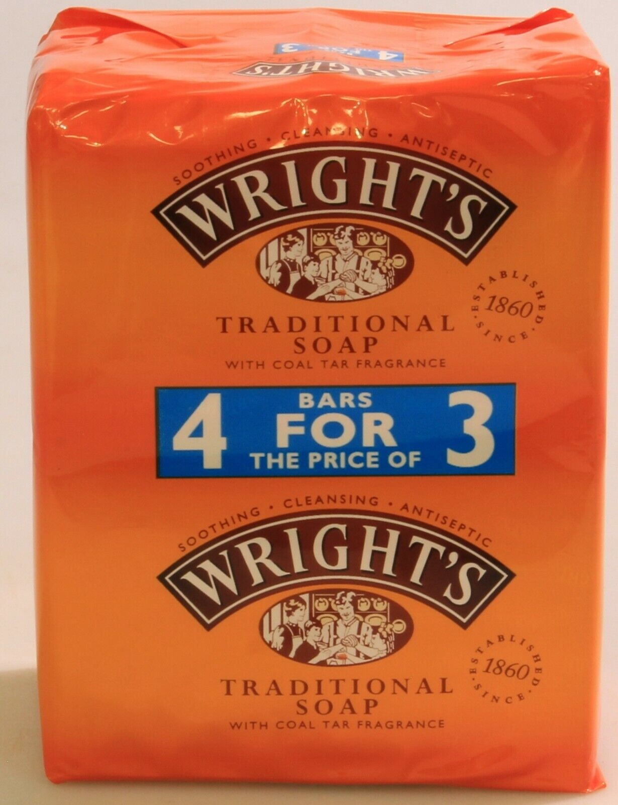 4 BARS WRIGHTS TRADITIONAL COAL TAR ANTISEPTIC CLEANSING FRAGRANCE SOAP 100g