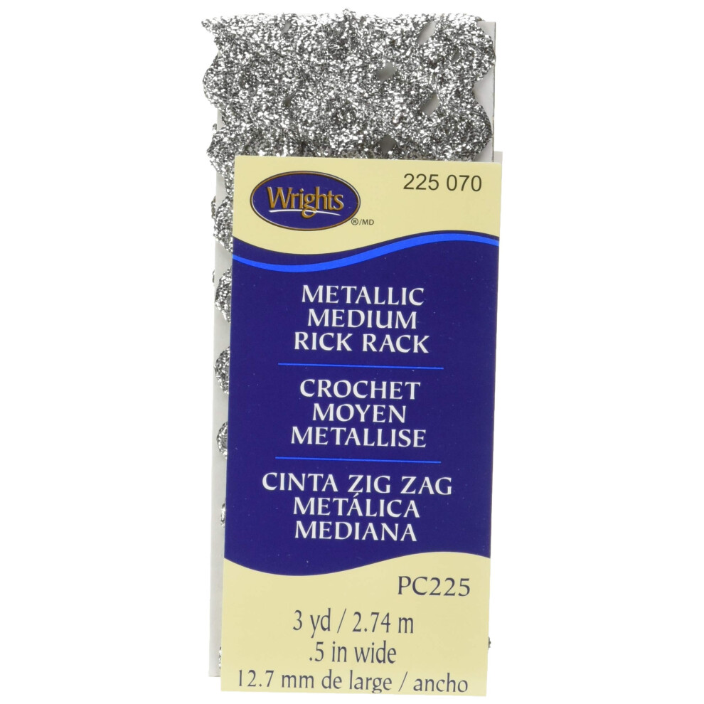 Wrights 117-225-070 Medium Metallic Rick Rack Silver 3 yd