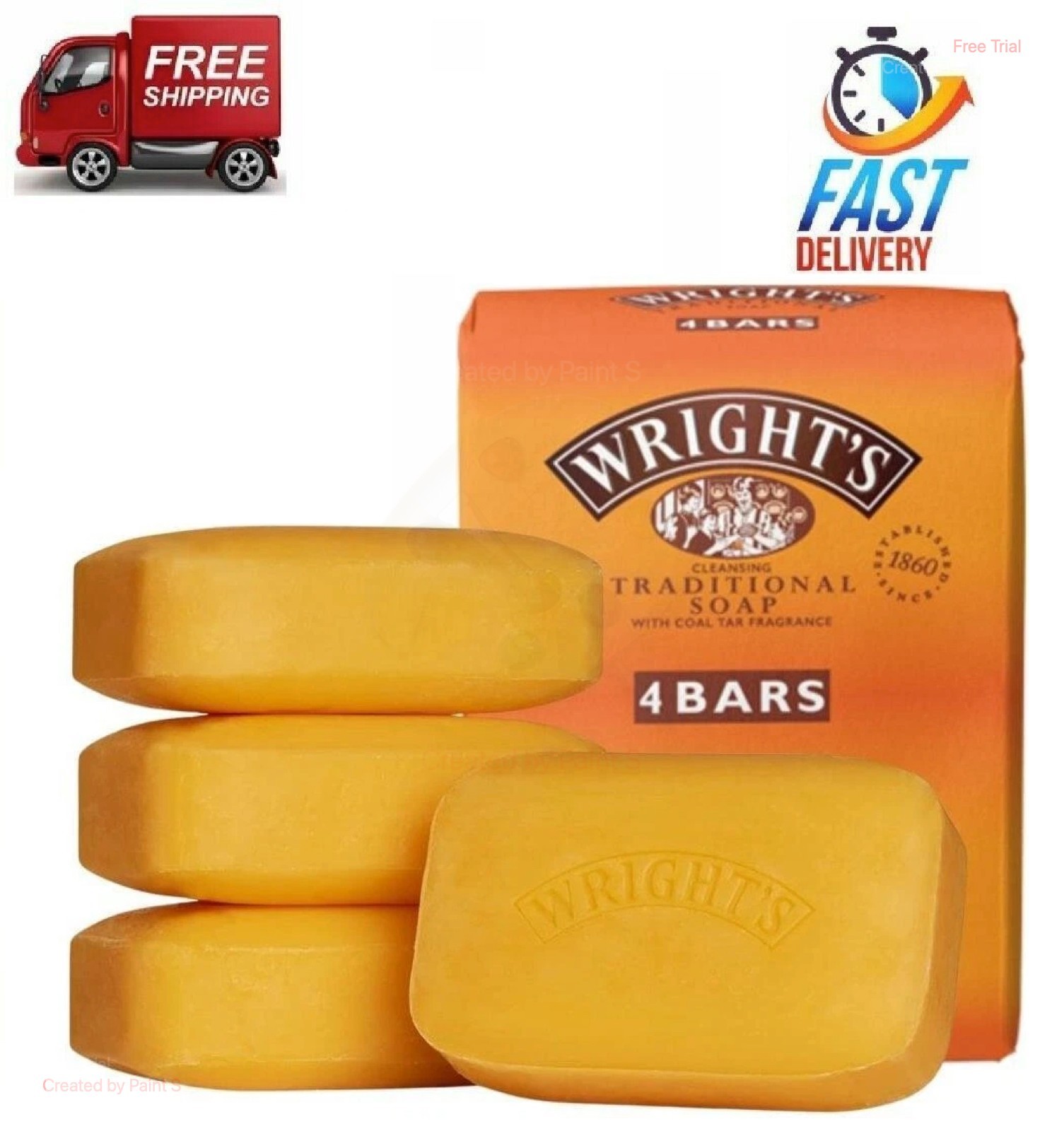 4 Bars WRIGHTS Traditional Coal Tar Antiseptic Cleansing Fragrance Soap 100g