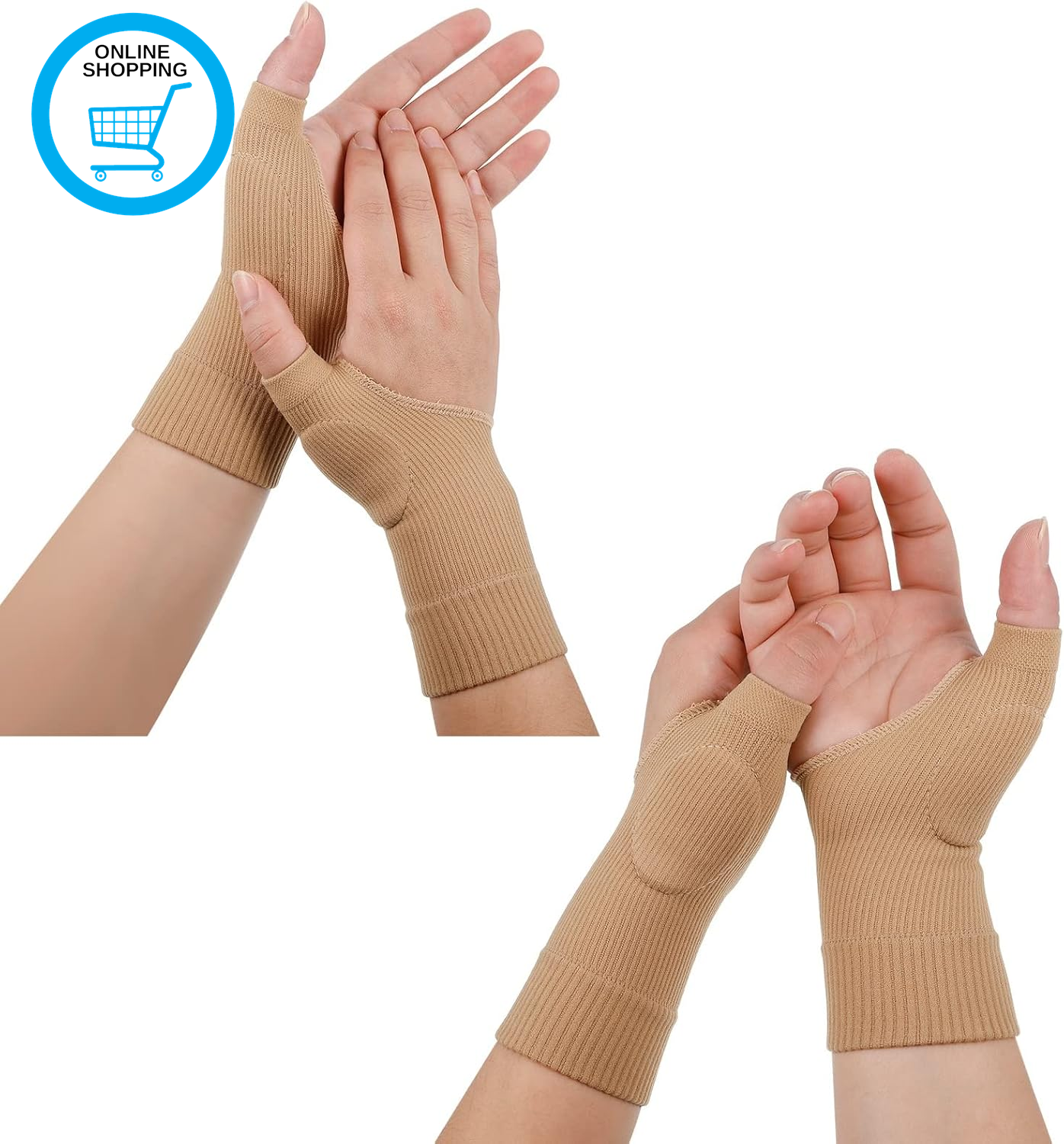 Atan Compression Wrist and Thumb Support for Arthritis, Carpal Tunnel, Joint Pain, Sprain, Sports, Hand Instability| Improve Circulation| Breathable, Ergonomic, and Supportive, 1 Pair (Beige, L)