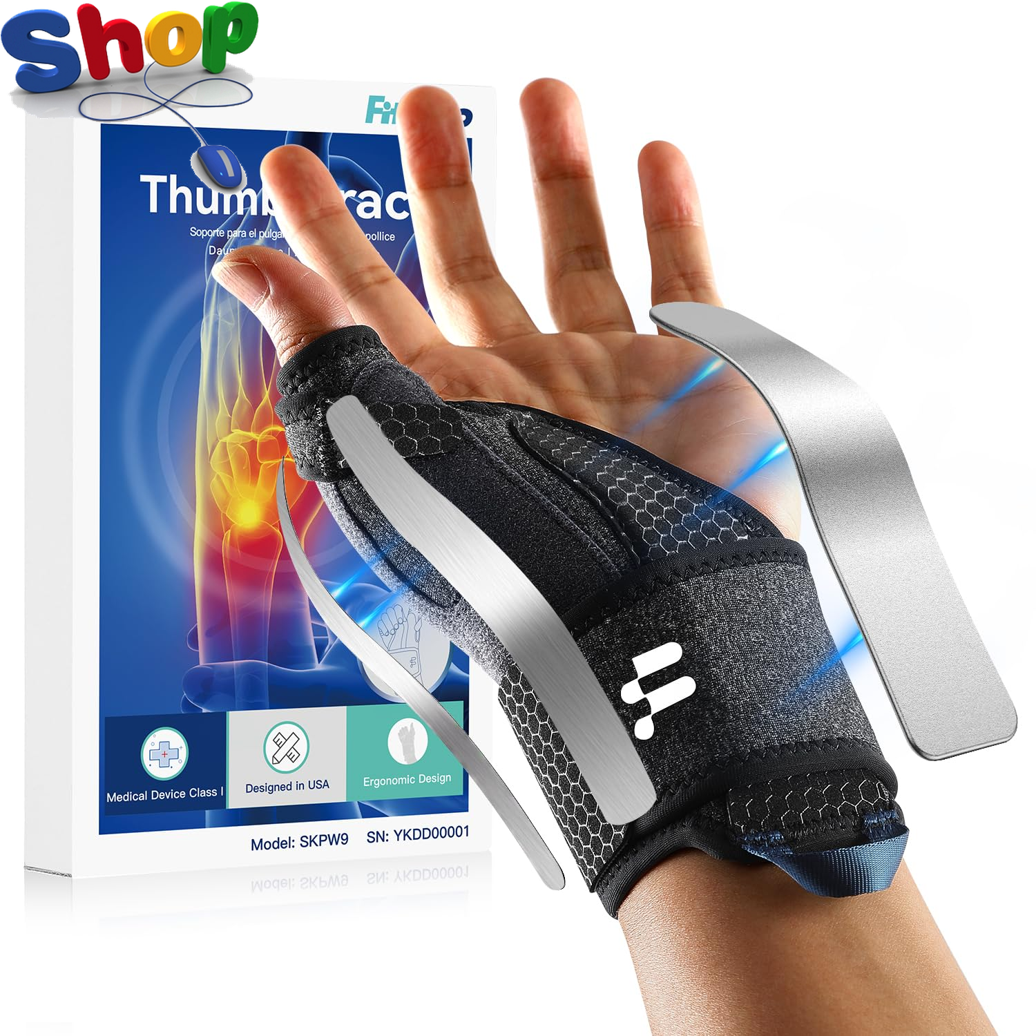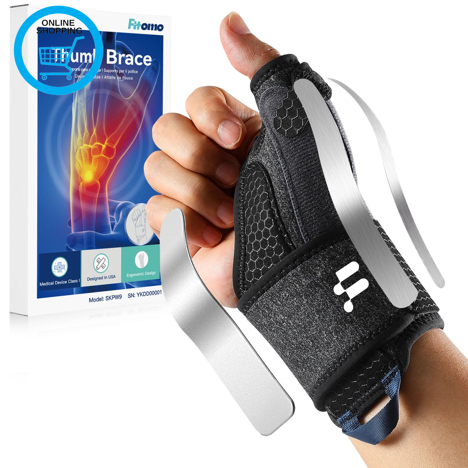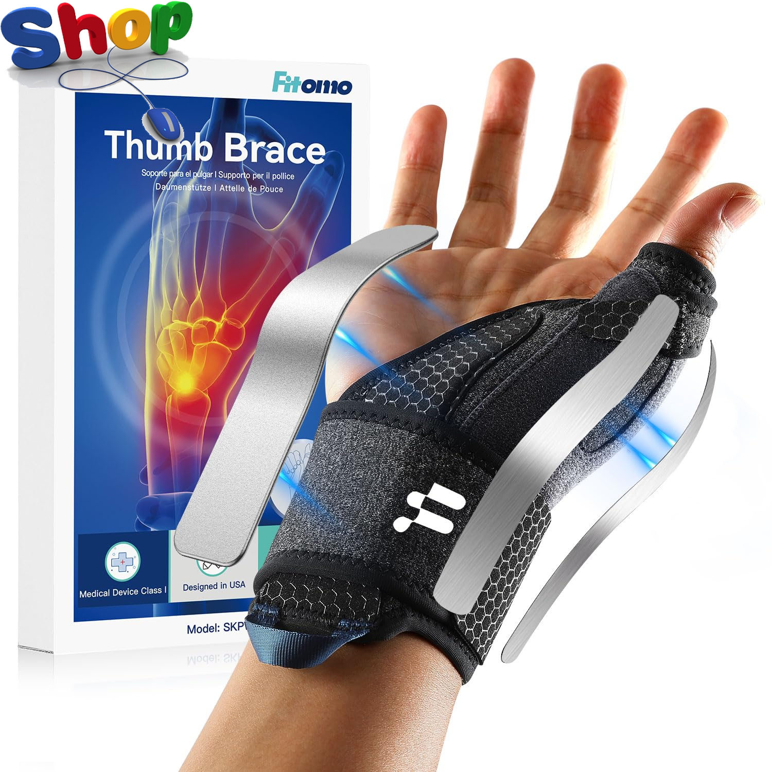 Fitomo Wrist and Thumb Support, 2 en 1 Finger Splint for De Quervains Tenosynovitis, Arthritis, Trigger Finger, Pain Relief, Tendonitis, Carpal Tunnel Pain Relief and Thumb Sprain