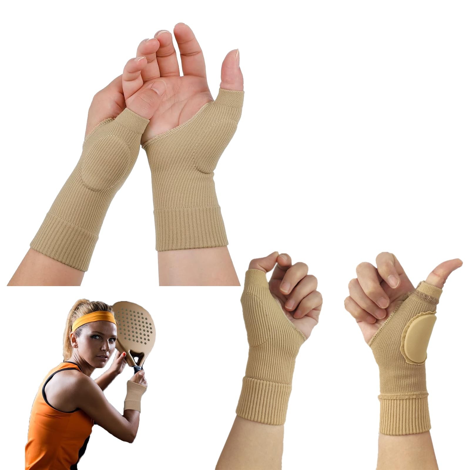 Geyoga 2 Pcs Compression Wrist Support Thumb Wrist Splint Breathable Wrist and Thumb Support Elastic Wrist Brace Hand Supports for Women Men Sports, Medium(Nude)
