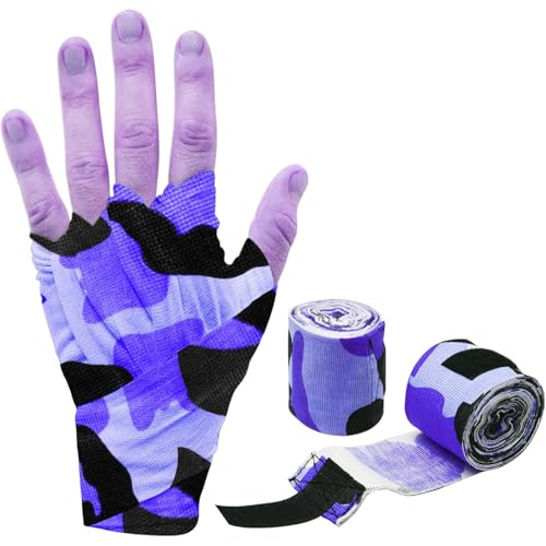 YNR MMA Boxing Hand Wraps - Inner Gloves, Short Boxing Bandages for Men, Women & Kids, Wrist Support Straps, Kickboxing Gym Wraps, Boxing & Glove Wraps | (Camo Purple)