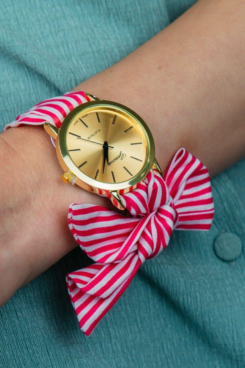 Pink Changeable Stripe Cloth Women Bracelet Wristwatch