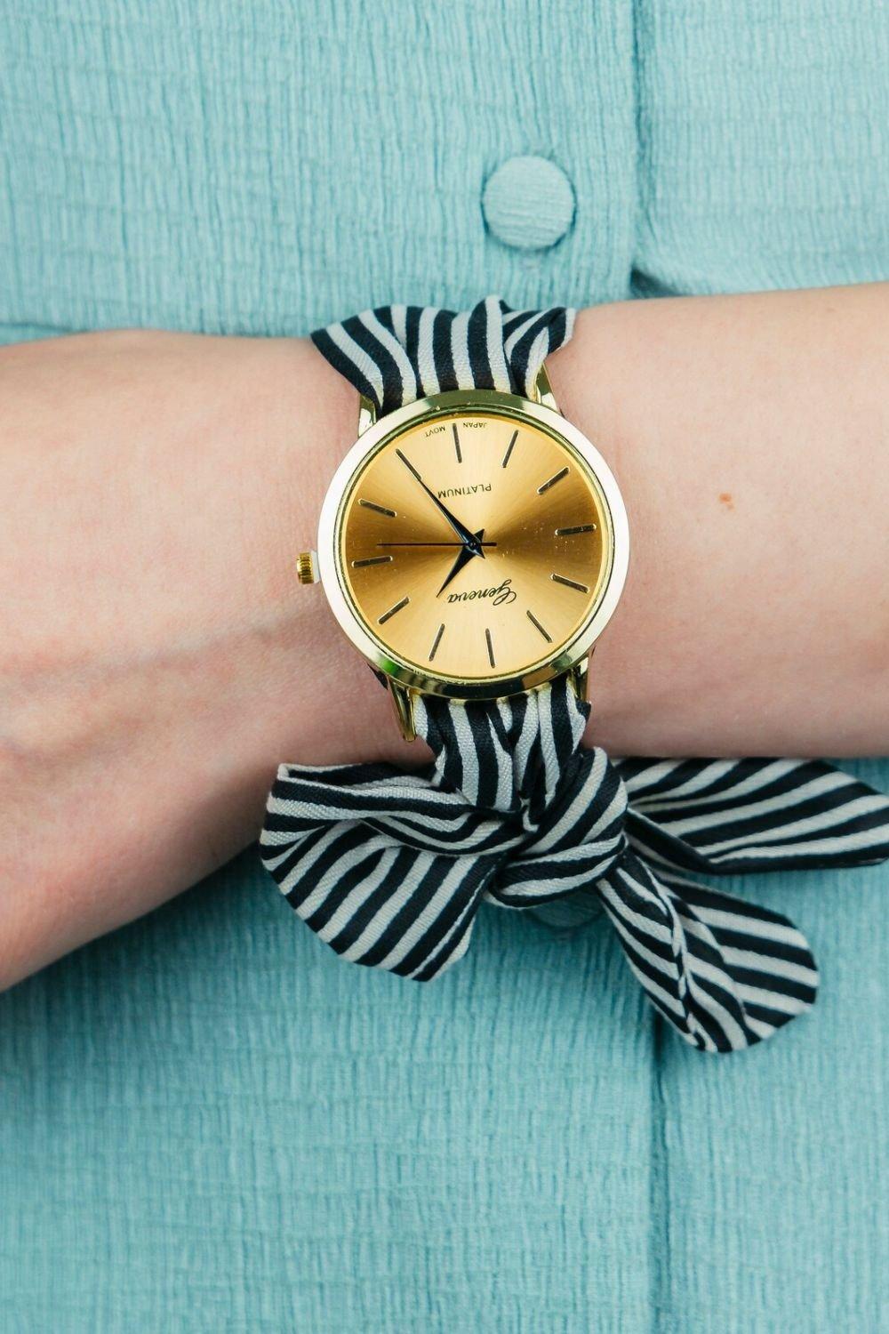 Black Changeable Stripe Cloth Women Bracelet Wristwatch