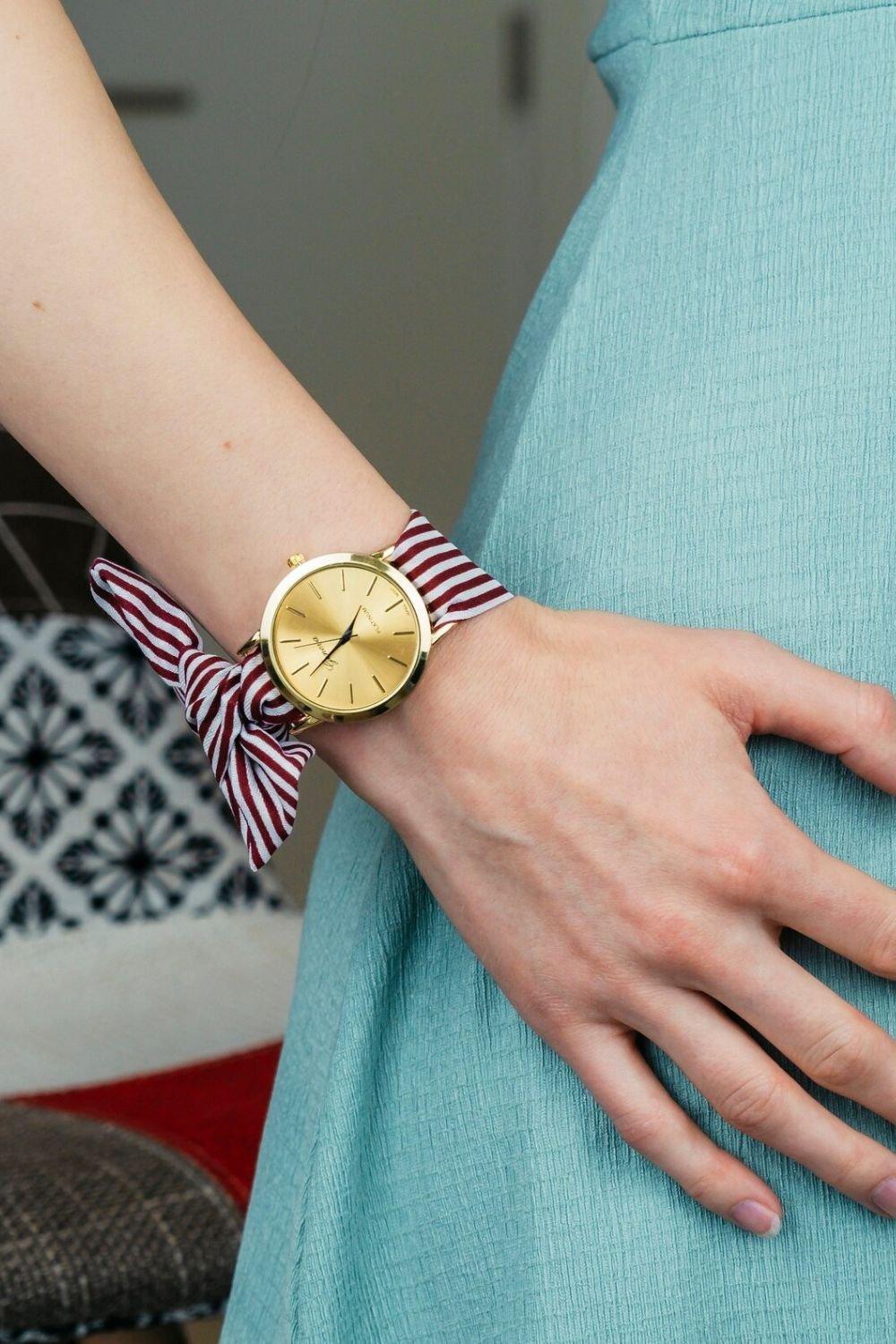 Red Elephant Print Changeable Fabric Strap Boho Tie Wristwatch