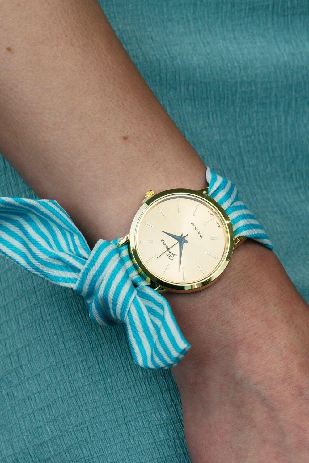 Blue Watermelon Print Changeable Cotton Tie Knot Strap Geneva Boho Wristwatch