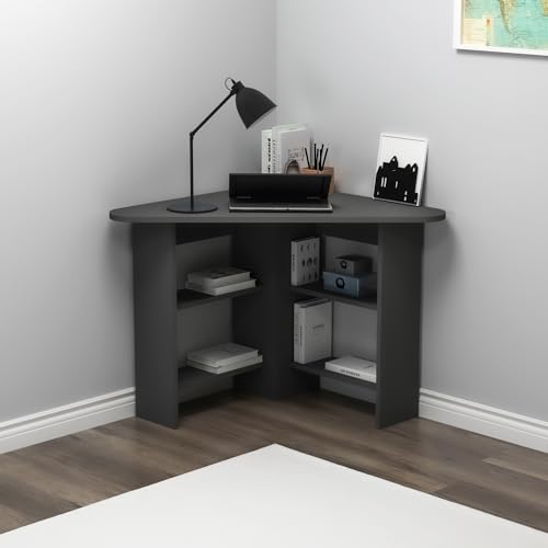 Gredos Computer Desk, Corner Desk, Writing Desk with Storage Shelves, H 73.8 cm | W 105 cm | D 80 cm (Anthracite)