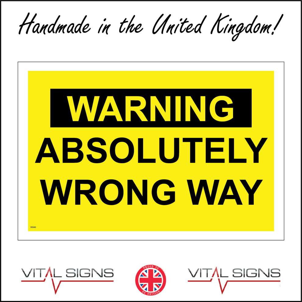 (300 x 200mm - 12 x 8, D - 1mm Pvc Foamex) VE243 Warning Absolutely Wrong Way Sign Direction Route Turn Around Journey 600mm x 450mm B - Magnetic - Ve