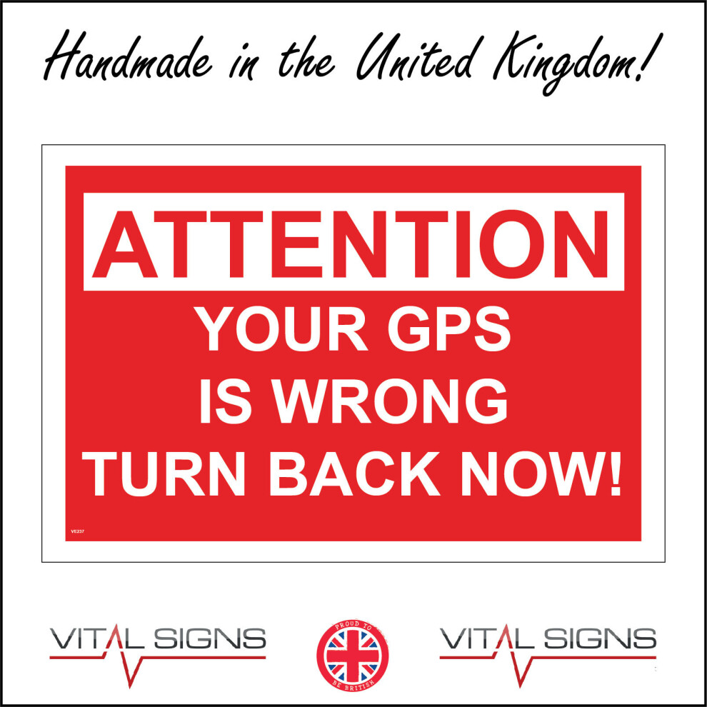 (200 x 150mm - 8 x 6, D - 1mm Pvc Foamex) VE237 Attention Your GPS Is Wrong Turn Back Now Sign sat Nav Route Journey 600mm x 450mm B - Magnetic - Veh