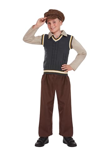HENBRANDT Children's World War Two Evacuee Boy Costume - Authentic Historical Fancy Dress Outfit for School Events, Book Days, Large Size Ages 10-12 Years