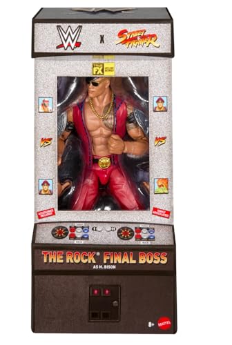 Mattel WWE x Street Fighter Action Figures & Accessories, The Rock Final Boss as M. Bison, 6-inch Elite Collectible Mashup Set, JLD79
