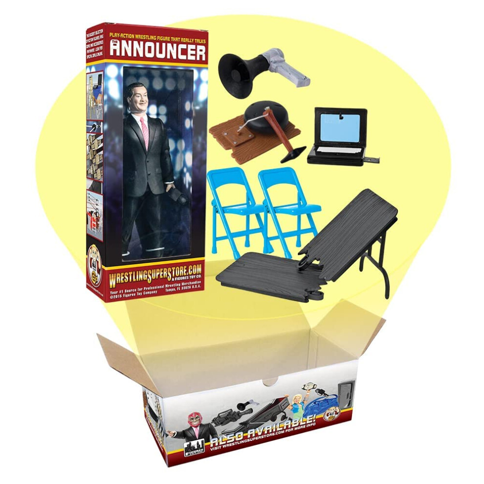 Talking Wrestling Ring Announcer & Accessory Set for WWE & AEW Wrestling Action Figures