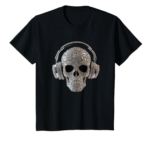 Bling Skull with Headphones - DJ Music Lover T-Shirt, Youth, Black, X-Small