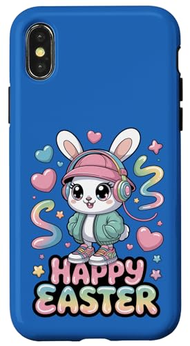 Kawaii Easter Bunny with Headphones Pastel Happy Easter Case for iPhone X/XS