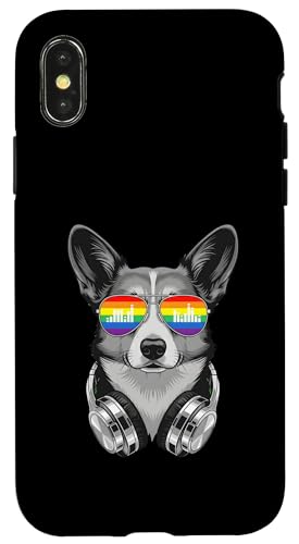 Cute Corgi DJ Headphones Rainbow Pride Sunglasses Music Dog Case for iPhone X/XS