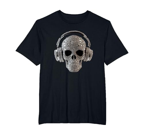 Bling Skull with Headphones - DJ Music Lover T-Shirt, Men, Black, X-Large