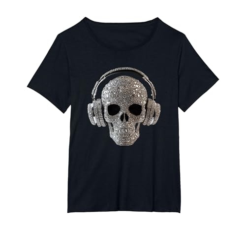 Bling Skull with Headphones - DJ Music Lover T-Shirt, Women's Plus, Black, 3X