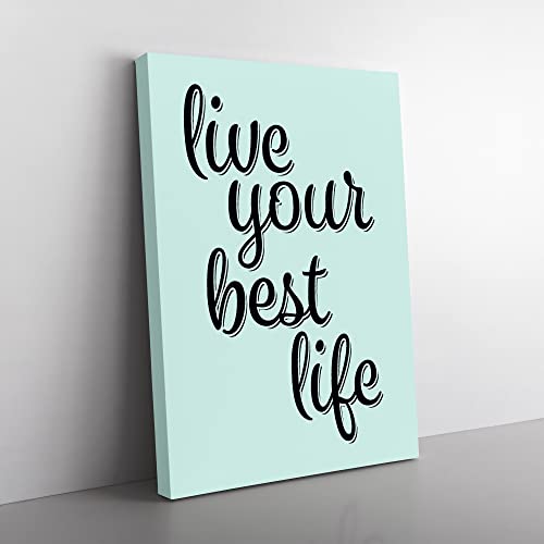 Live Your Best Life Typography Quote Canvas Wall Art Print Ready to Hang, Framed Picture for Living Room Bedroom Home Office Décor, 76x50 cm (30x20 Inch)