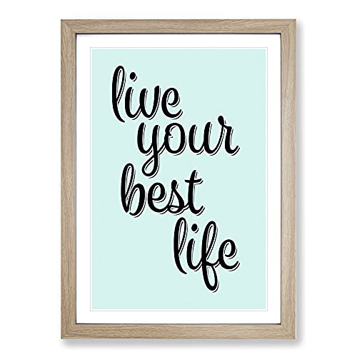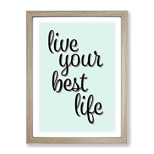 Live Your Best Life Typography Quote Framed Wall Art Print, Ready to Hang Picture for Living Room Bedroom Home Office Décor, Oak A4 (34 x 25 cm)