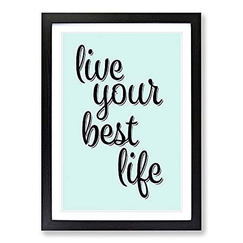 Live Your Best Life Typography Quote Framed Wall Art Print, Ready to Hang Picture for Living Room Bedroom Home Office Décor, Black A4 (34 x 25 cm)