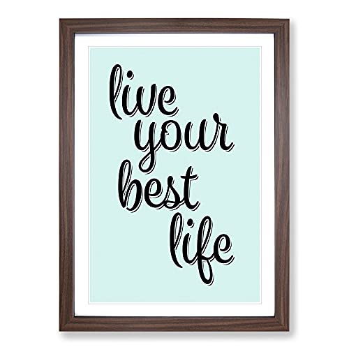 Live Your Best Life Typography Quote Framed Wall Art Print, Ready to Hang Picture for Living Room Bedroom Home Office Décor, Walnut A4 (34 x 25 cm)