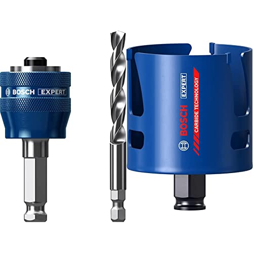 Bosch Professional 1x Expert Power Change Plus Hole Saw System Adapter (Ø 7,15 mm) + 1x Expert Tough Material Hole Saw (for Wood with Metal, Ø 73 mm, Accessories Rotary Impact Drill)