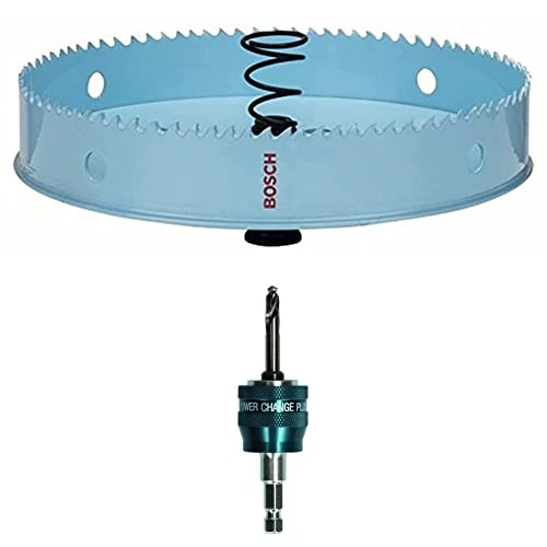Bosch Professional 1x Expert Power Change Plus Hole Saw System Adapter (Ø 7,15 mm) + 1x Expert Tough Material Hole Saw (for Wood with Metal, Ø 152 mm, Accessories Rotary Impact Drill)