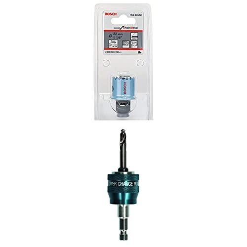 Bosch Professional Hole Saw Sheet Metal (Ø 32 mm) + 1x Power Change Plus Adapter (Socket 3/8" Hexagonal Shank, Incl. HSS-Co Drill Bit 7.15 x 65 mm)