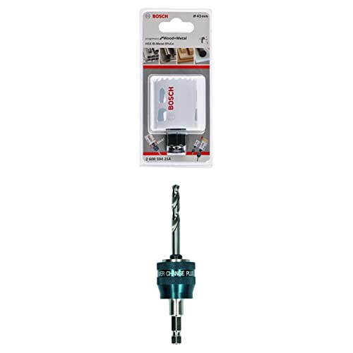 Bosch Professional Hole Saw Progressor for Wood & Metal (Ø 43 mm) + 1x Power Change Plus Adapter (Socket 3/8" hexagonal shank, HSS-G Drill Bit Ø 7.15 x 85 mm)