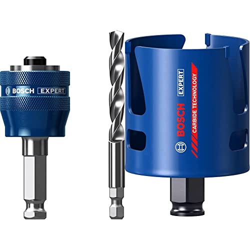 Bosch Professional 1x Expert Power Change Plus Hole Saw System Adapter (Ø 7,15 mm) + 1x Expert Construction Material Hole Saw (for Softwood, Ø 73 mm, Accessories Rotary Impact Drill)